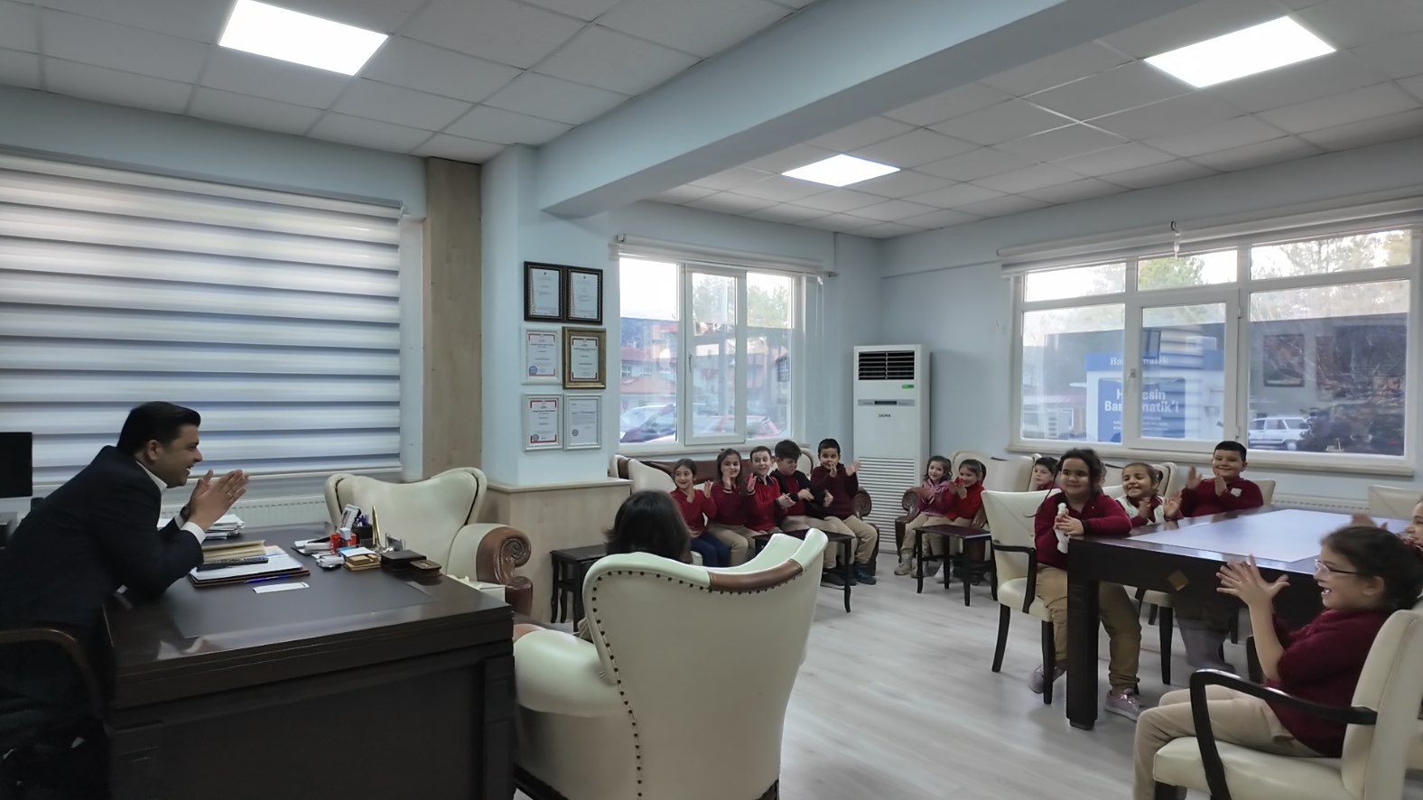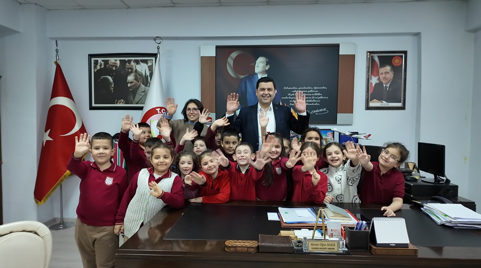 Başkanımız, “Bugün bizi makamımızda ziyaret eden Ali Orhan Kirişoğlu İlkokulu öğrencilerimize ve kıymetli öğretmenlerimiz Şeyma Pehlivan Sönmez, Zekiye Mutlu ve Gülcan Karadavut Sönmez’e çok teşekkür ediyoruz.” ifadelerini kullandı.